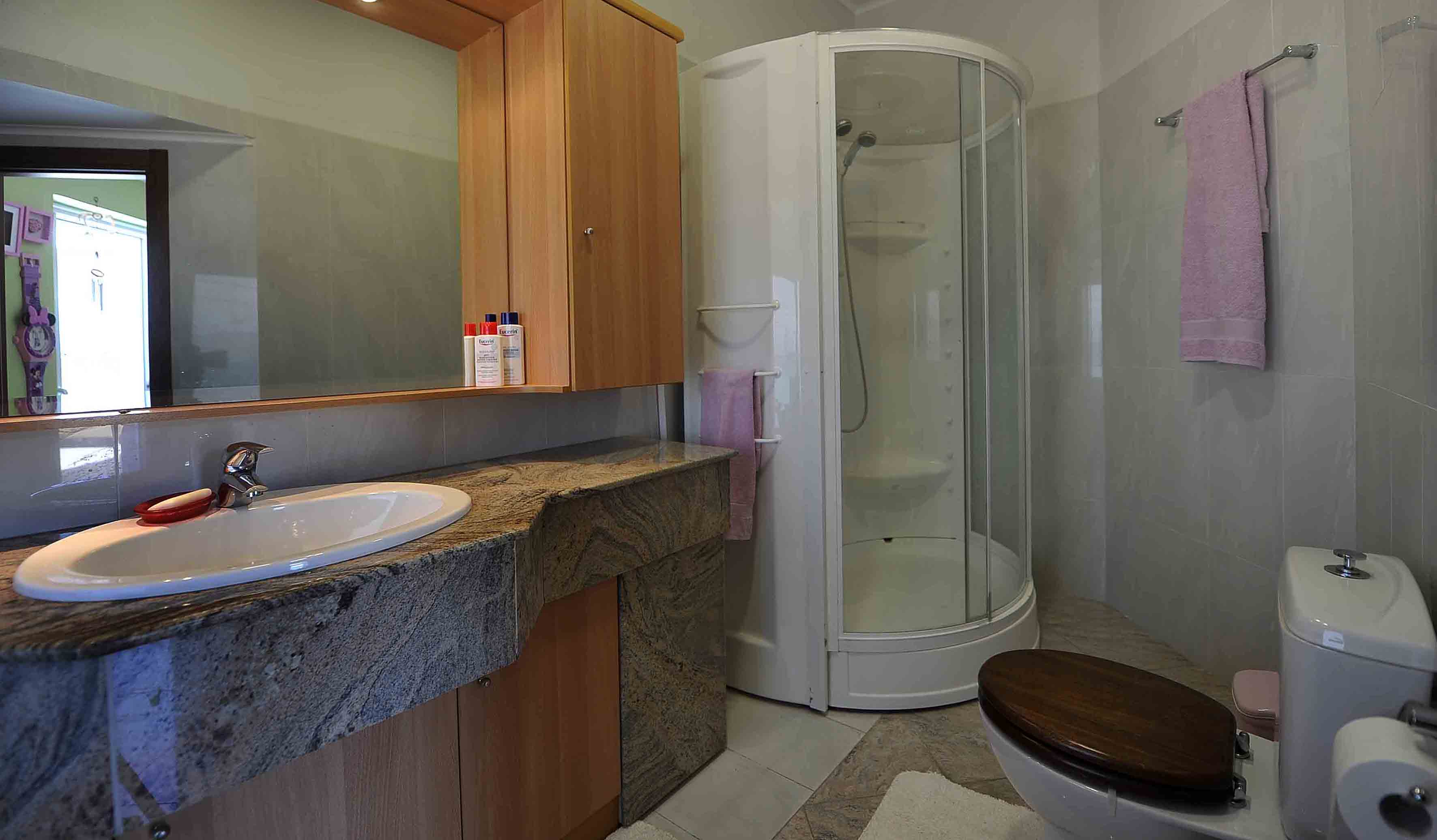 There is 1 bedroom with double bed, one living rooms with 2 single beds, dining room, 1 kitchen, bathroom with jacuzzi shower.