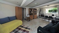 There is 1 bedroom with double bed, one living rooms with 2 single bed-sofas, dining room, 1 kitchen with dish washer and wash machine, bathroom with shower.