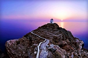 The small hilly island of Sifnos is one of the western Cyclades. This rocky island is dotted with white houses.